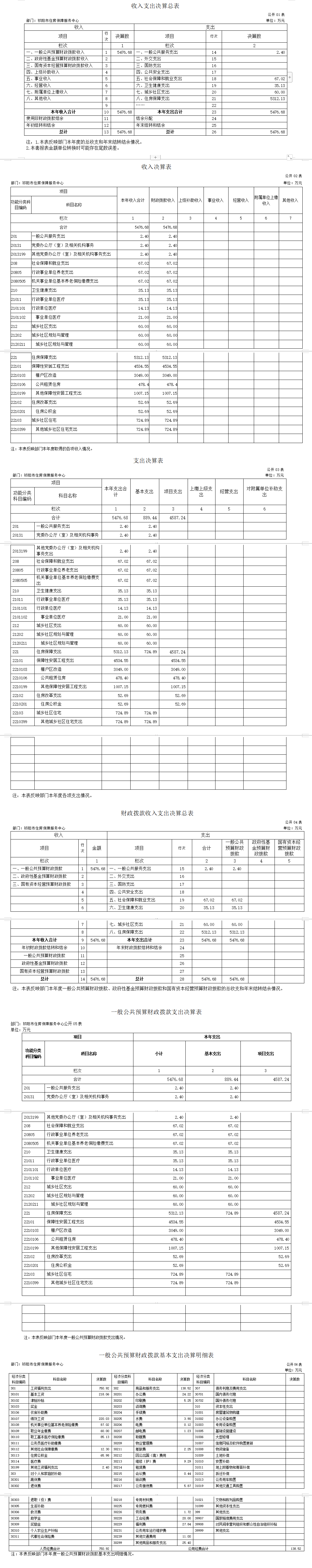 2021年度收、支总计5476.68万元。与上年相比,减少38727.13万元,减少87.61%,主要是因为机构改革职能划转,将农村危房改造、老旧小区改造资金划转到住建局;人员退休工资基数减少,社保住房公积金等人员经费相应减少。