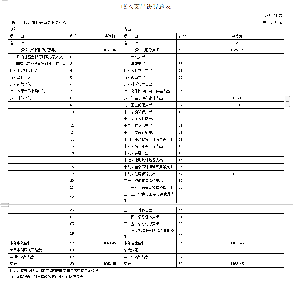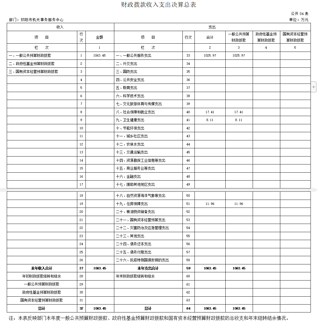 2021年度收、支总计1063.45万元。与上年相比,减少37.88万元,减少3.4%,主要是因为一般公共服务支出相对减少。