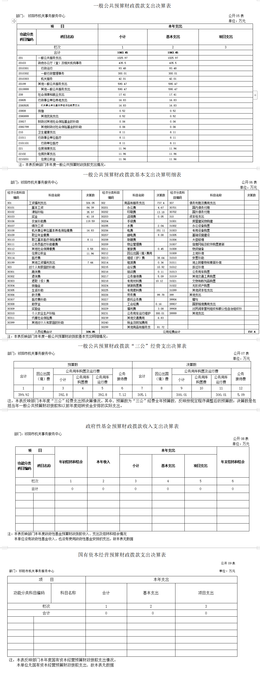 五、一般公共预算财政拨款支出决算表