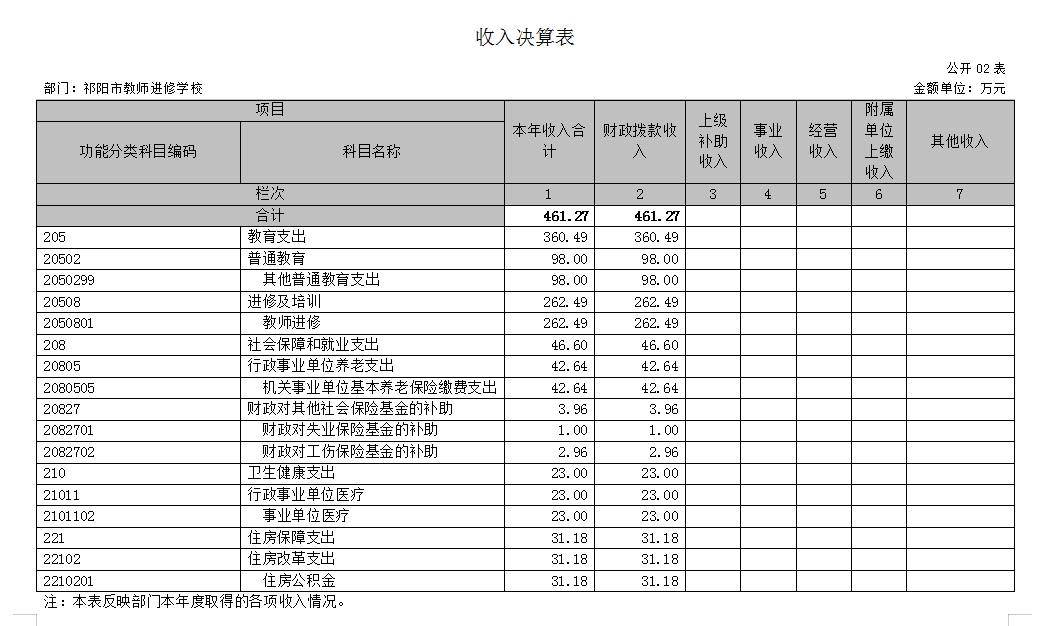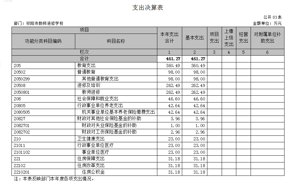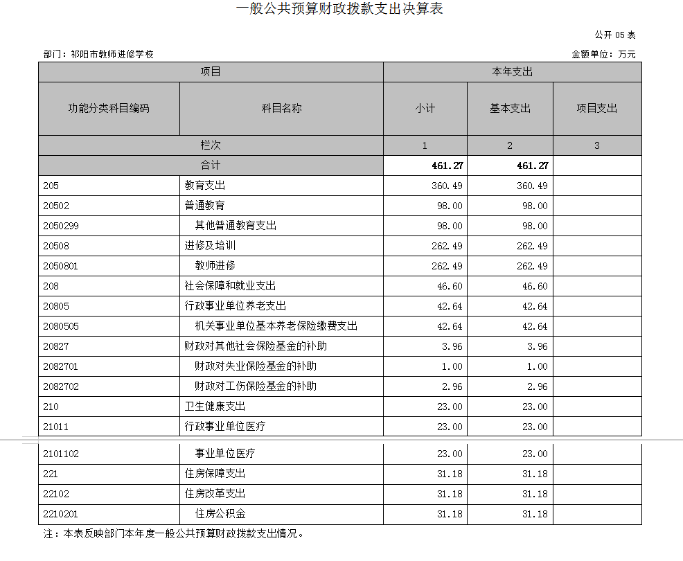 第二部分祁阳市教师进修学校2021年度部门决算表
