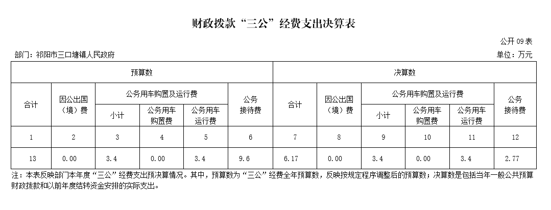 (二)决算单位构成。三口塘镇人民政府2022年部门决算汇总公开单位构成包括:三口塘镇人民政府本级,无下属单位。单位性质为财政全额拨款行政单位,决算编报类型为单表户,按照行政单位会计制度填报决算数据。