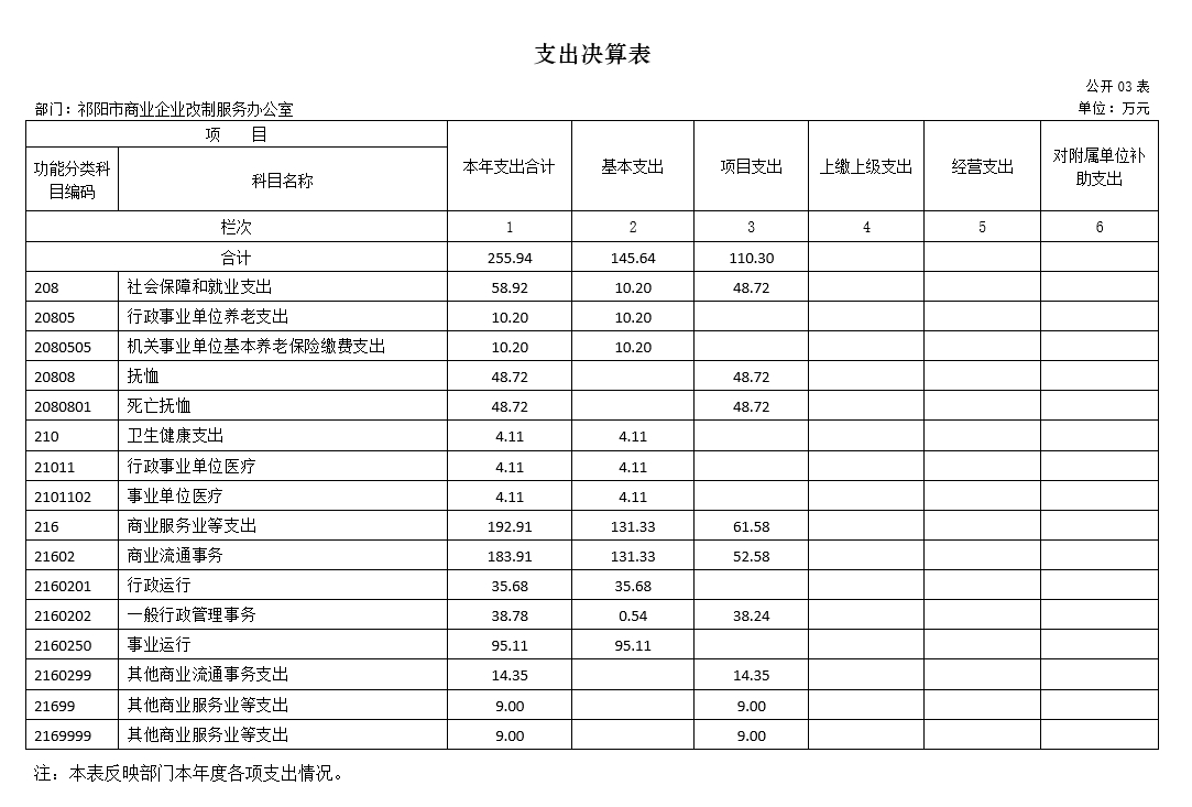 二、祁阳市商业企业改制服务办公室整体支出绩效情况
