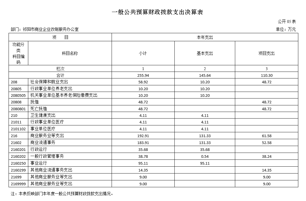 2023年度祁阳市商业企业改制服务办公室整体支出绩效自评报告