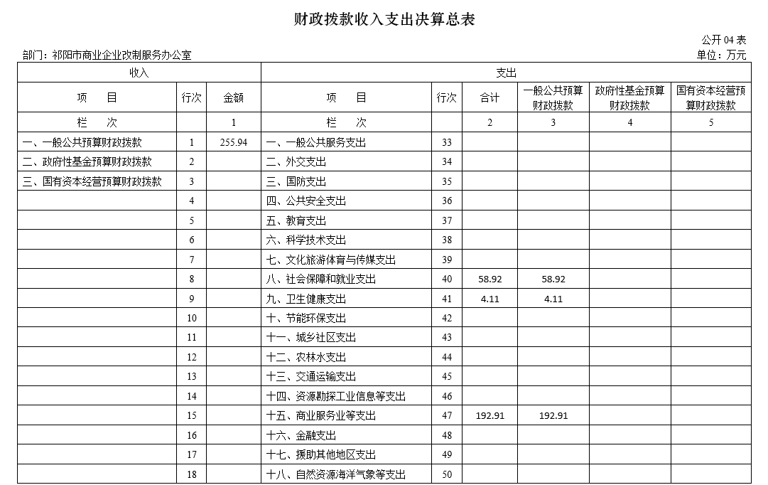 (四)以预算资金管理为主线,祁阳市商业企业改制服务办公室资产管理和开展业务情况。