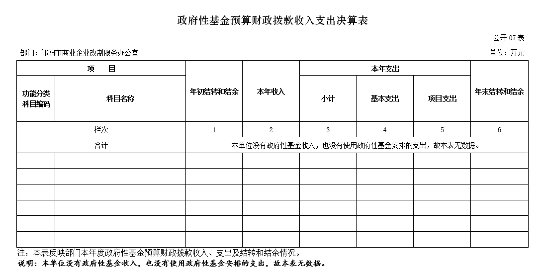 (二)决算单位构成。本单位2023年部门决算公开单位构成包括:祁阳市商业企业改制服务办公室本级,无下属独立核算单位。