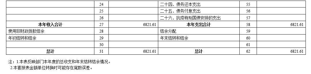 2023年度收、支总计6821.61万元。与上年相比,增加1339.99万元,增长24.45%,主要是因为人员经费有所增加。