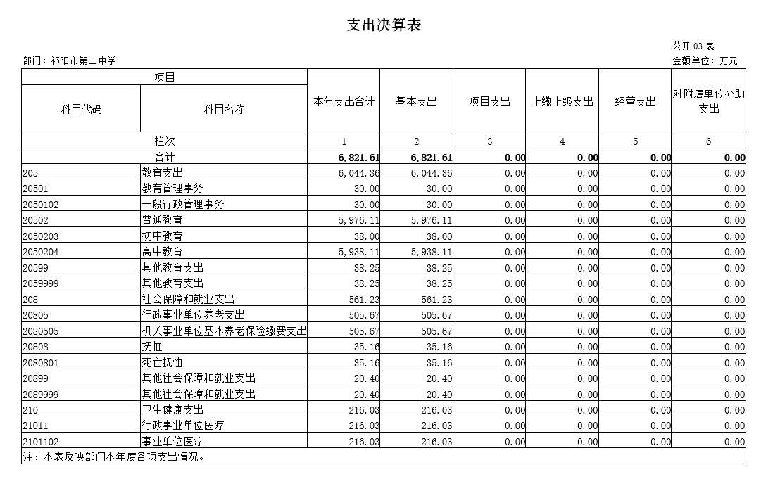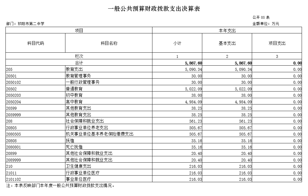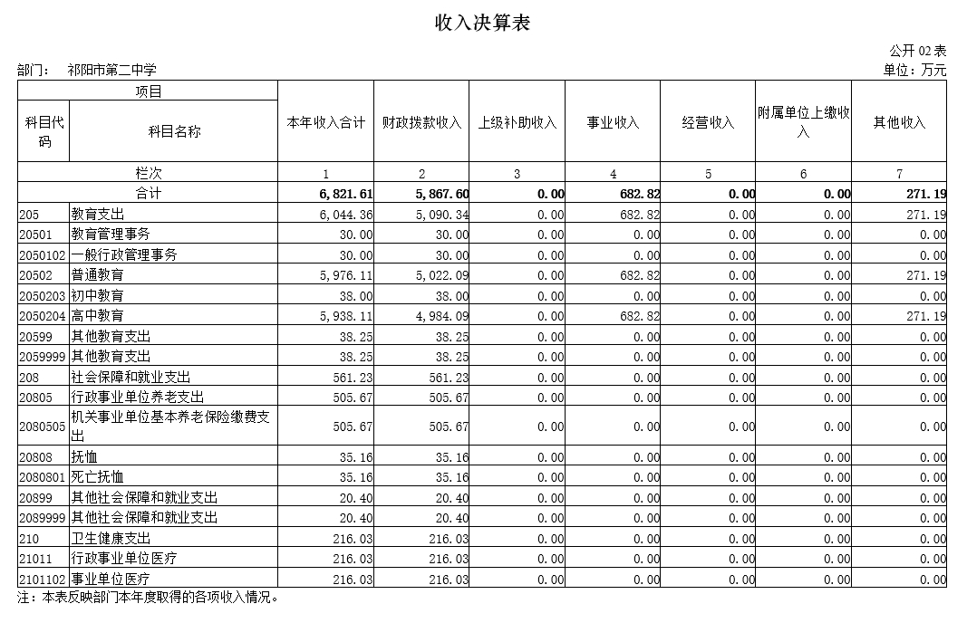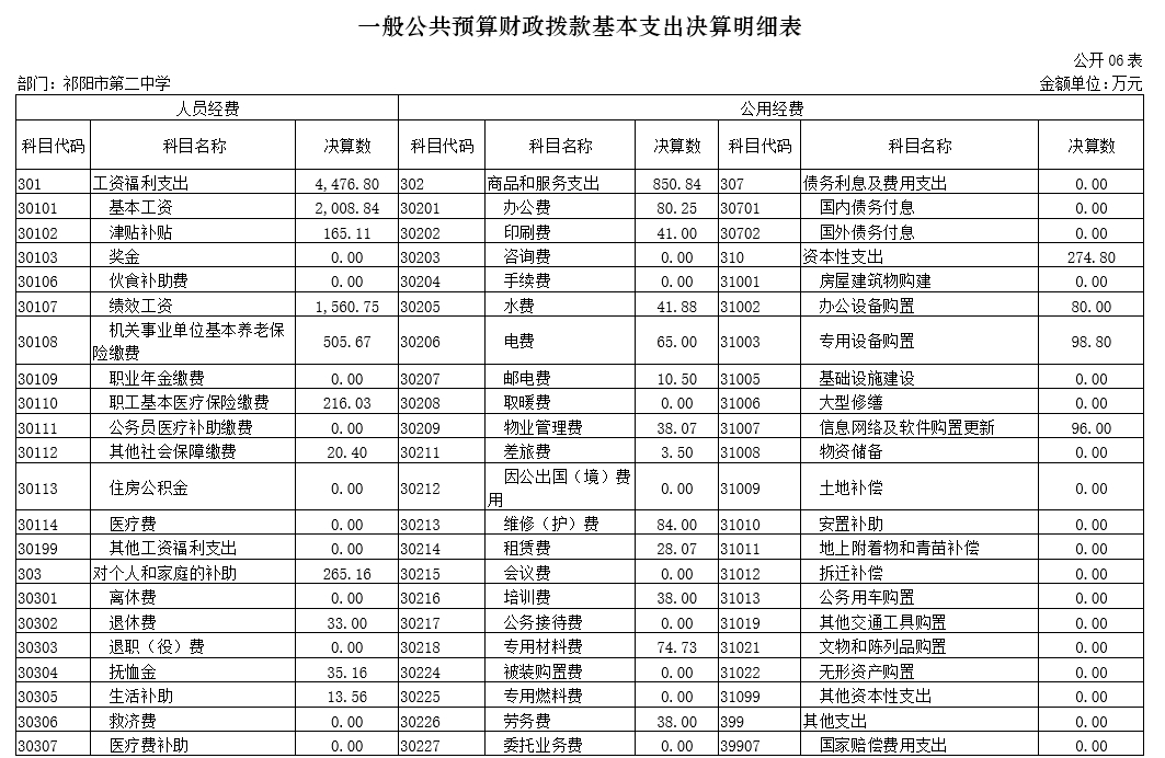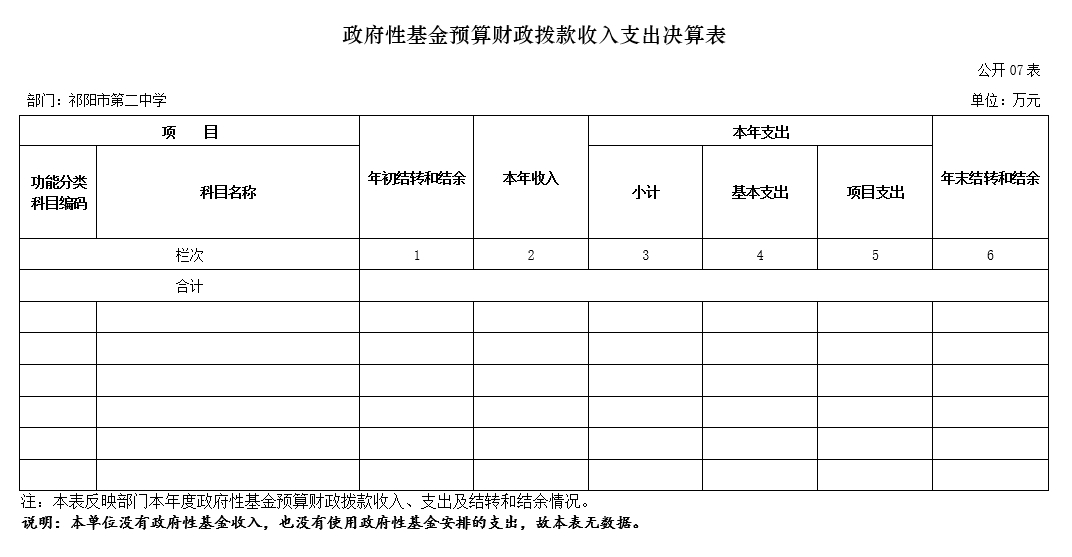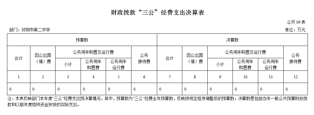 (二)决算单位构成。祁阳县第二中学本级1个。