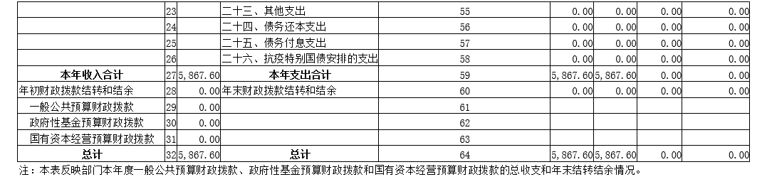 2023年度财政拨款收、支总计5867.6万元,与上年相比,增加1087.25万元,增长22.74%,主要是因为人员经费有所增加。