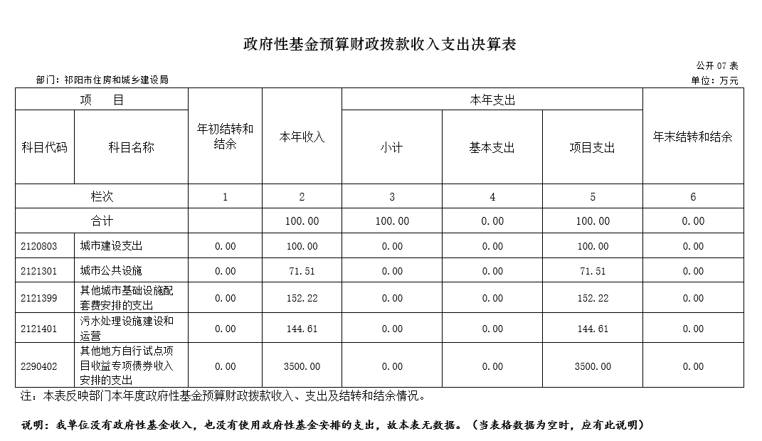 归口管理定额项目补助拨款单位有:市自来水总公司、市建设工程质量安全监督站、农村危改领导小组办公室、老旧小区改造、污水处理工程指挥部、祁阳市房票服务中心。