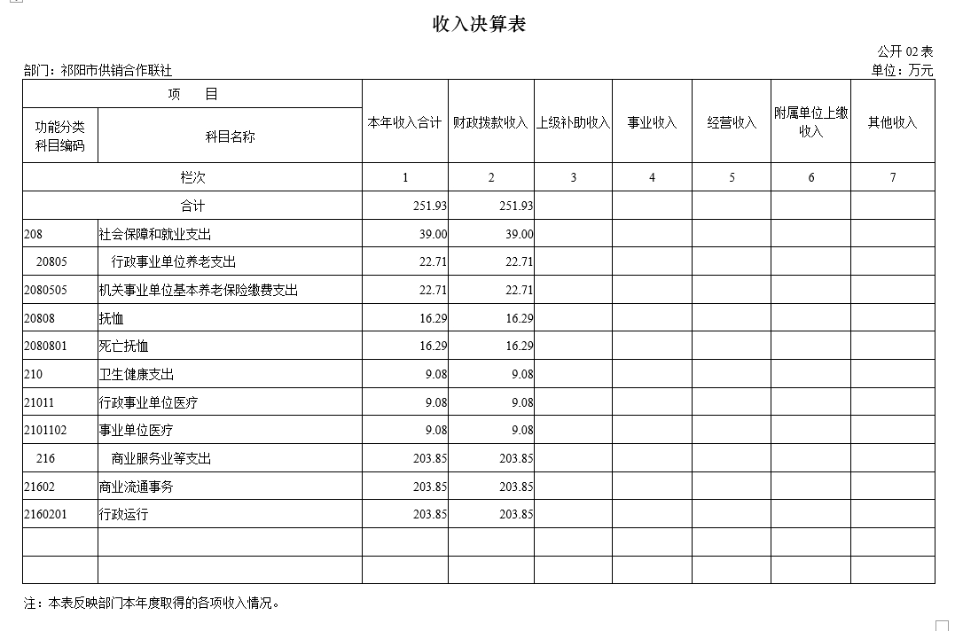 本部门2023年度收入决算数251.93万元,其中一般公共财政拨款收入251.93万元;支出决算数251.93万元,其中基本支出251.93万元,项目支出0万元。本年无结余。
