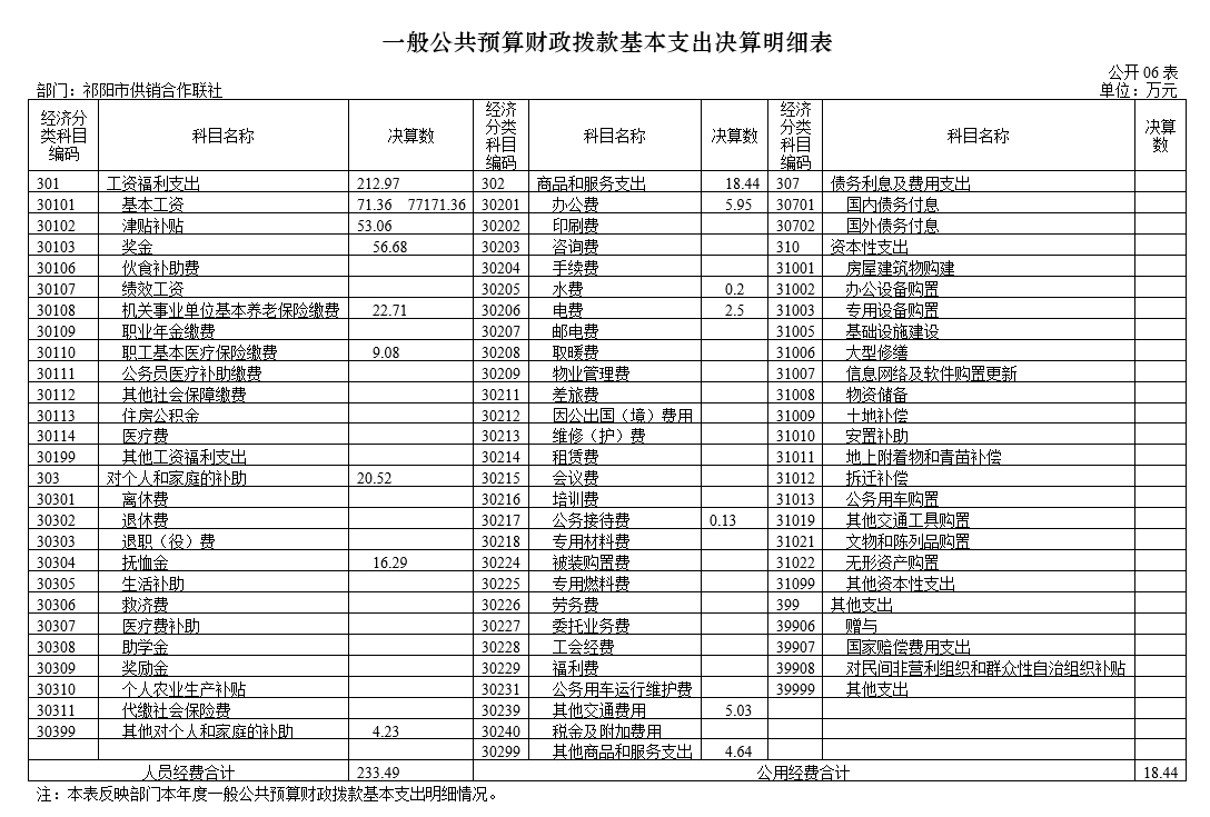 (二)决算单位构成。祁阳市供销合作联社单位2023年部门决算汇总公开单位构成包括:祁阳市供销合作联社单位本级。