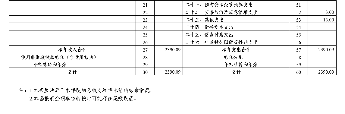 2024年度收入、支出总计2390.09万元。与上年相比,增加了229.82万元,增加了10.64%,主要是因为财政预算增加。