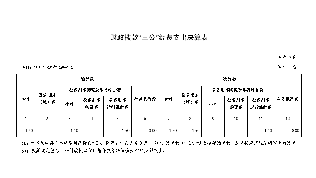 4、祁阳市长虹街道办事处认真执行中央八项规定,严格控制三公经费支出。2024年长虹街道办事处无机关人员因公出国计划,费用为零;没有购置公务用车,公务用车运行维护费支出2.71万元,主要用于本办机关工作人员到市委、市政府、市局开会汇报工作办理业务,到社区、村级组织、企业开会、指导、督促检查工作等所需的公务用车燃料费、维修费、保险费等支出;公务接待费0万元。