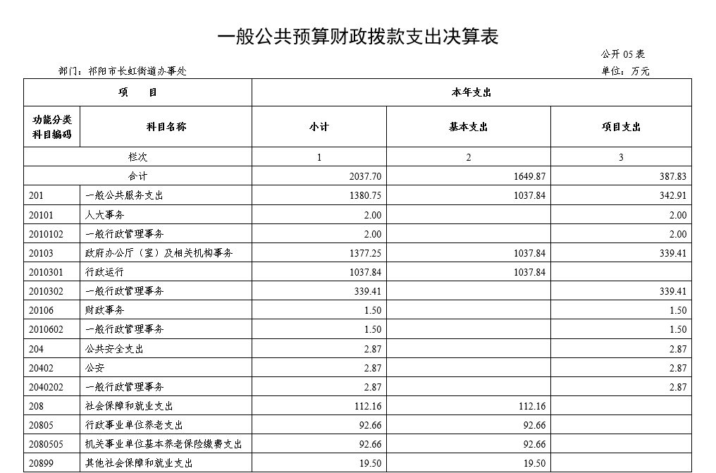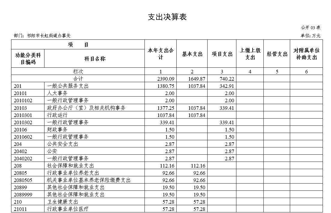 2024年祁阳市长虹街道办事处支出总额为2390.09万元,其中:基本支出为1649.87万元,项目支出为740.22万元。本年度无重点项目支出。