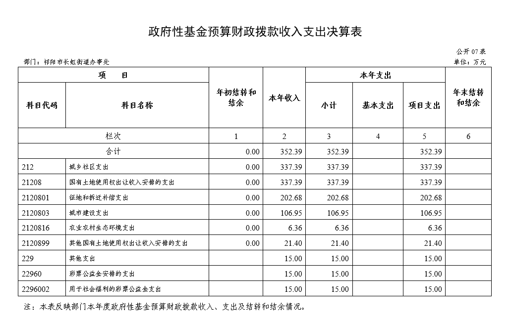 2024年度政府性基金预算财政拨款收入352.39万元;年初结转和结余0万元;支出352.39万元,其中基本支出0万元,项目支出352.39万元;年末结转和结余0万元。具体情况如下:
