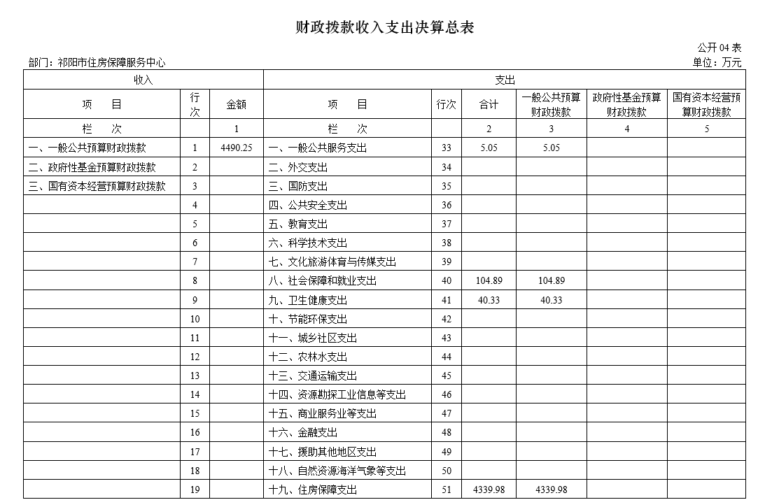 四、财政拨款收入支出决算总表