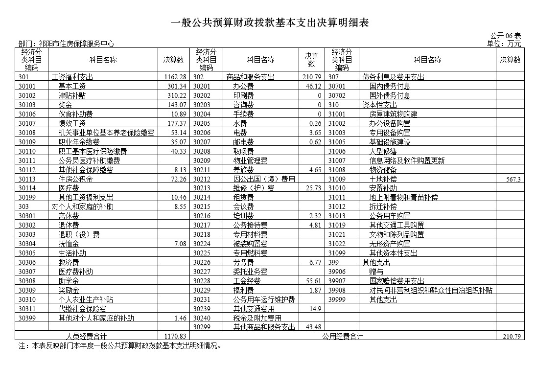 六、一般公共预算财政拨款基本支出决算明细表