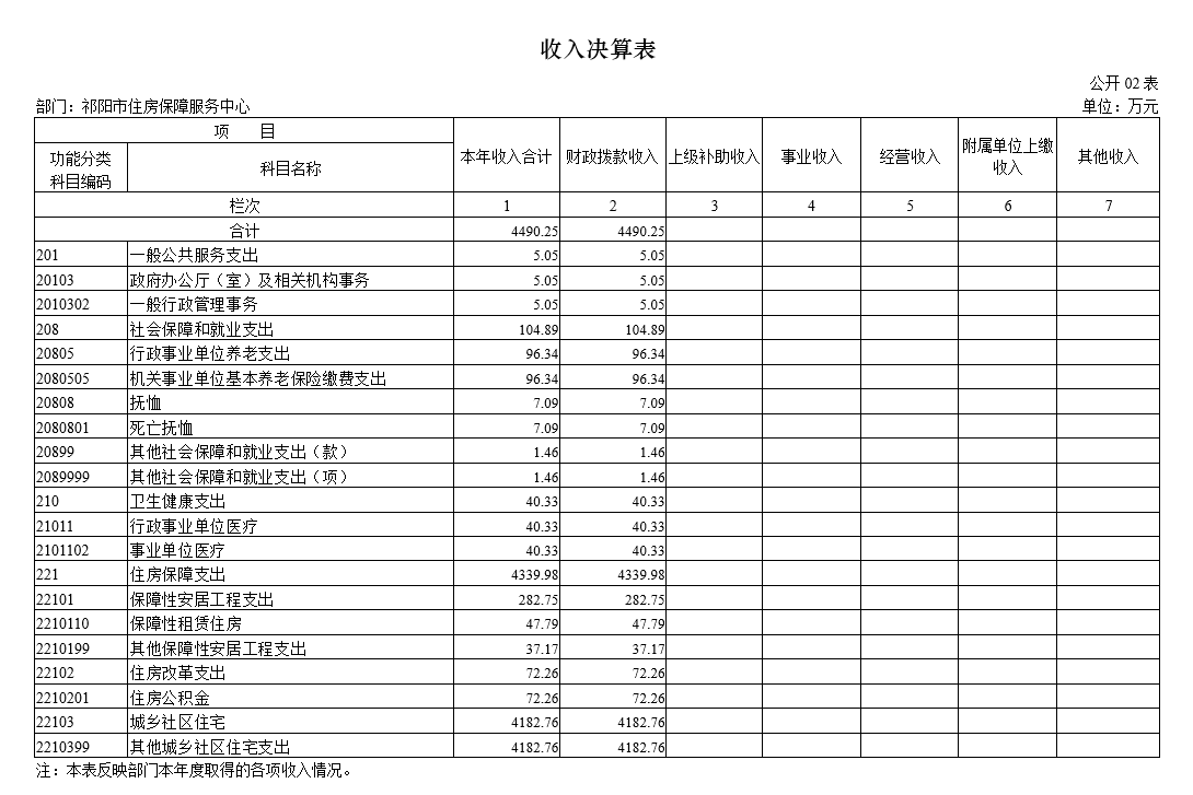 二、收入决算表