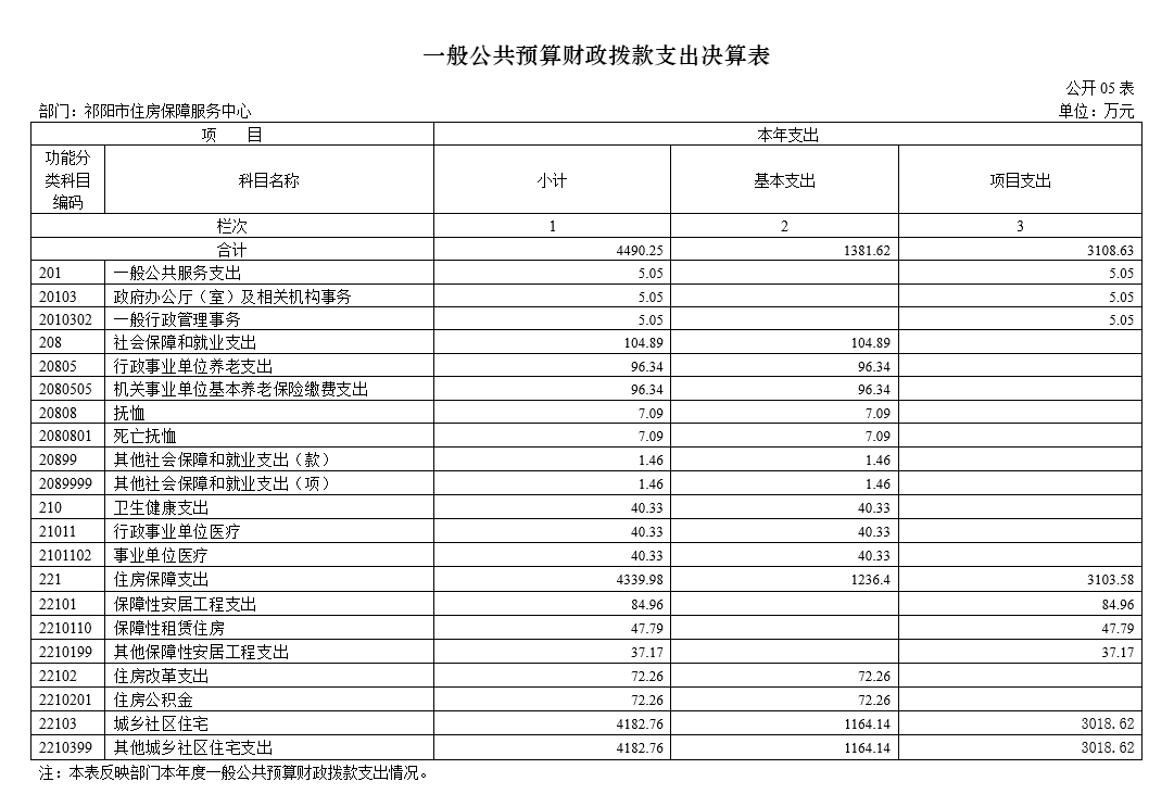 2024年度财政拨款支出4490.25万元,主要用于以下方面:一般公共服务支出5.05万元,占0.11%;社会保障和就业支出104.89万元,占2.34%;卫生与健康支出40.33万元,占0.9%;住房保障支出4339.98万元,占96.65%。