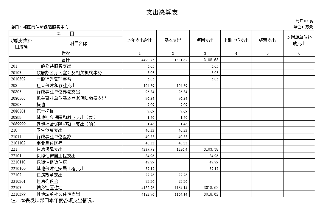 2024年度支出合计4490.25万元,其中:基本支出1381.62万元,占30.77%;项目支出3108.63万元,占69.23%;上缴上级支出0万元,占0%;经营支出0万元,占0%;对附属单位补助支出0万元,占0%。