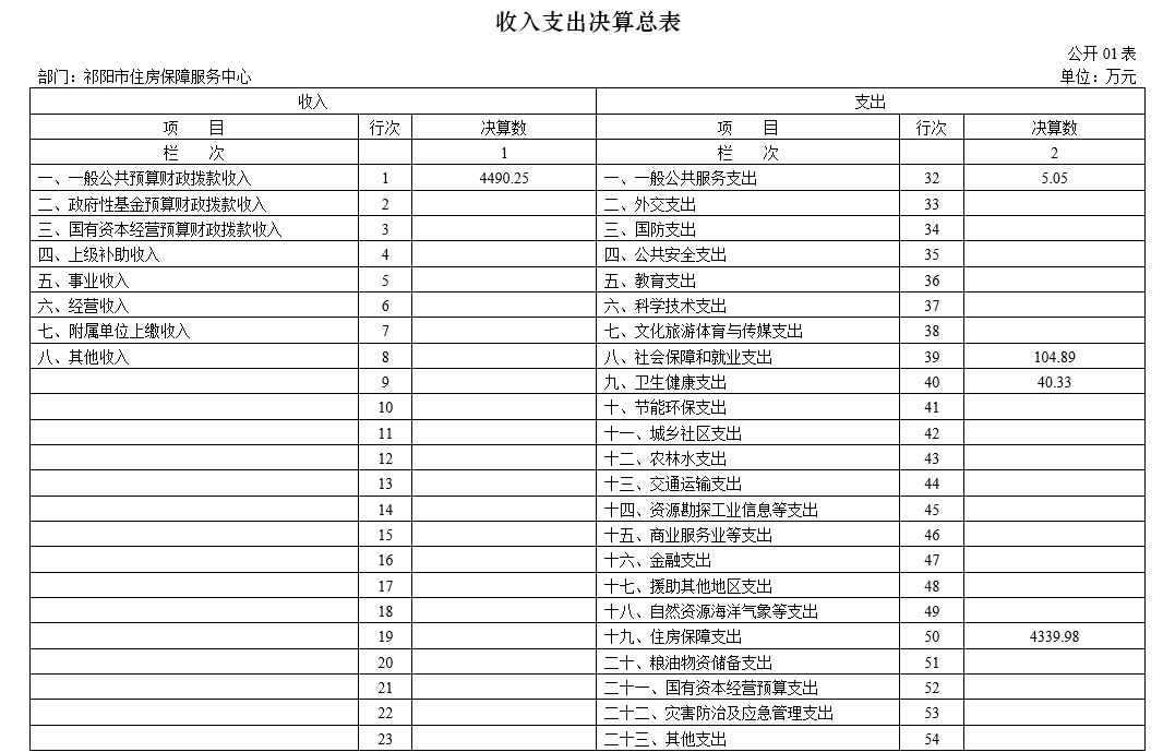 一、收入支出决算总表