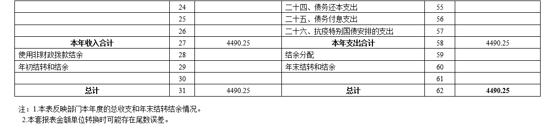 2024年度收、支总计4490.25万元。与上年相比,增加2837.86万元,增加171.74%,主要是因为:增加处置国有房屋税费2917.6万元。
