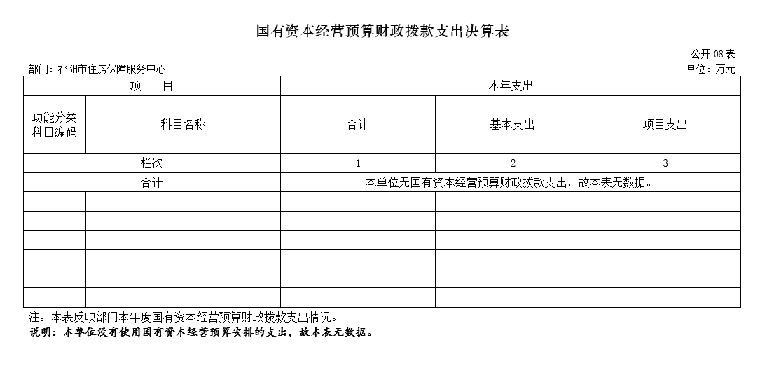 八、国有资本经营预算财政拨款支出决算表