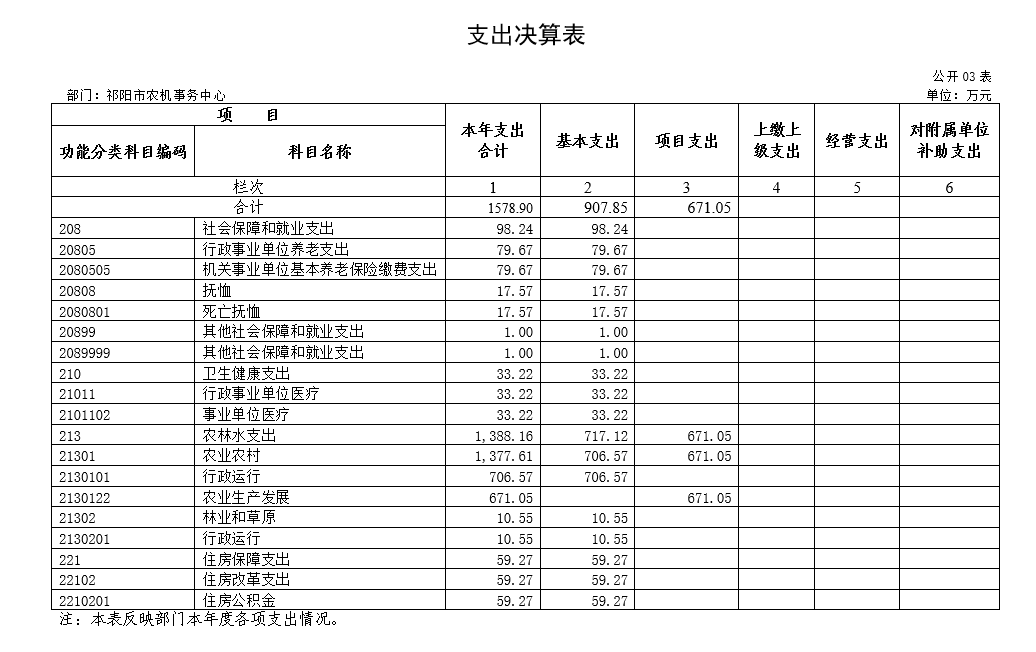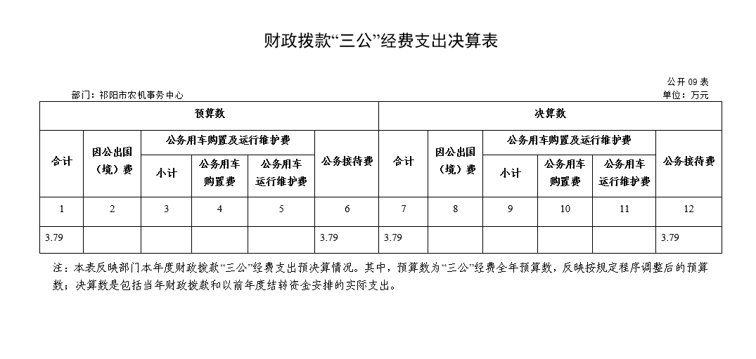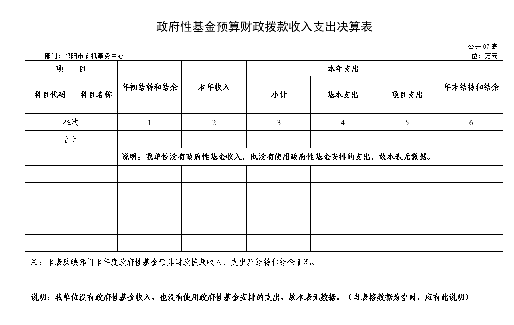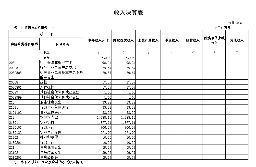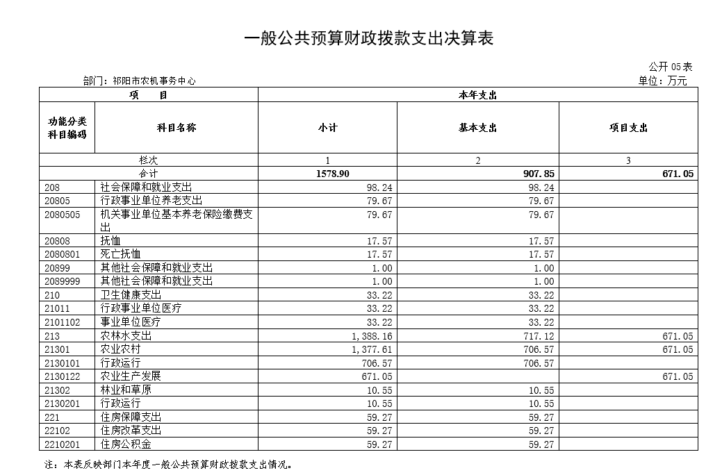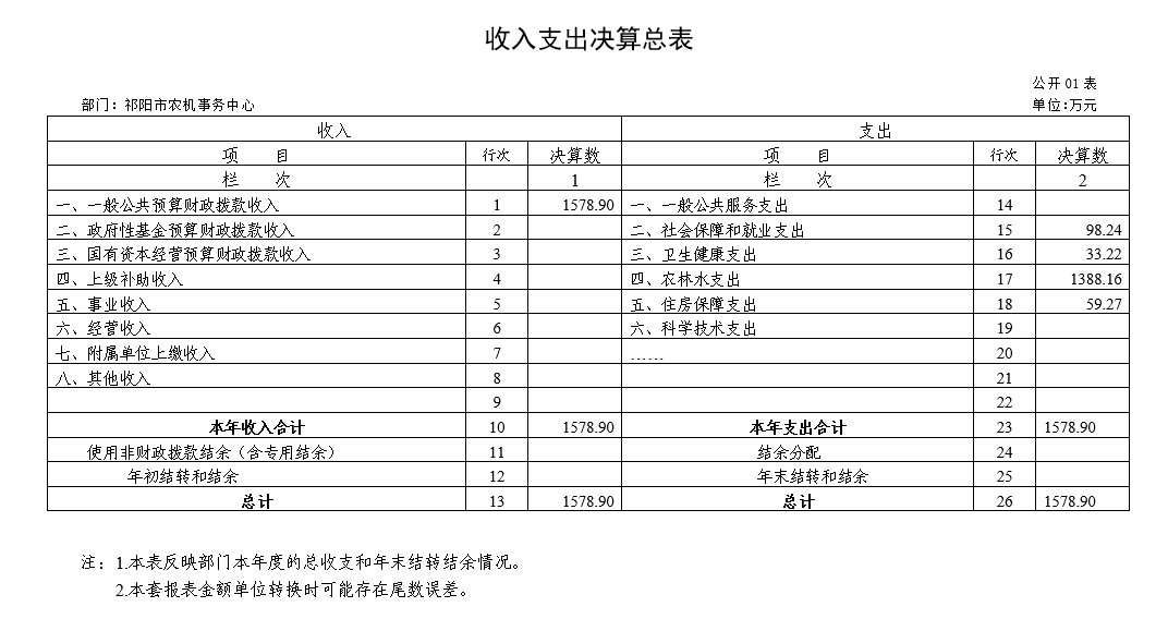 (二)决算单位构成。从决算单位构成看,本单位决算包括:祁阳市农机事务中心本级决算,无下属行政事业单位。
