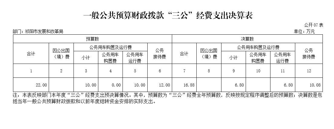 七、一般公共预算财政拨款“三公”经费支出决算表