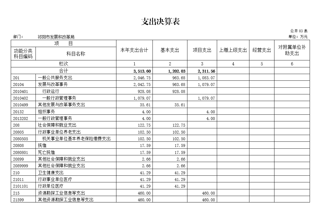 本年支出总计3513.6万元,其中:基本支出1202.03万元,占34.21%;项目支出2311.56万元,占65.79%;上缴上级支出0万元,占0%;经营支出0万元,占0%;对附属单位补助支出0万元,占0%。
