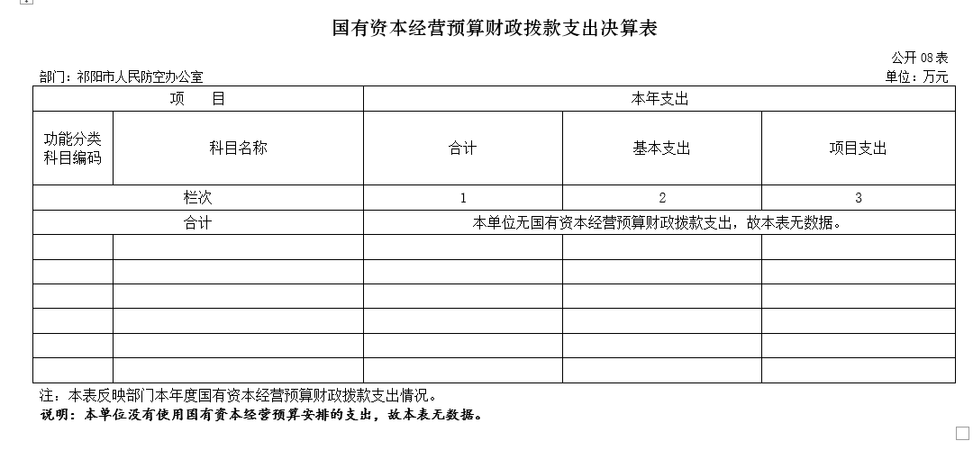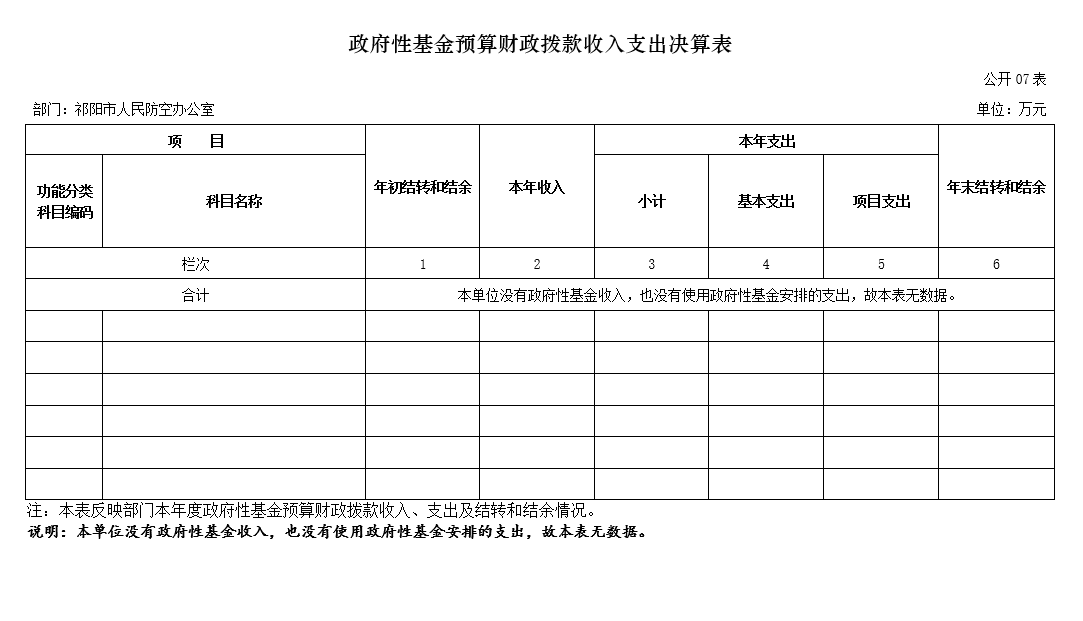 (三)决算单位构成。祁阳市人民防空办公室2024年部门决算汇总公开单位构成包括:祁阳市人民防空办公室本级。
