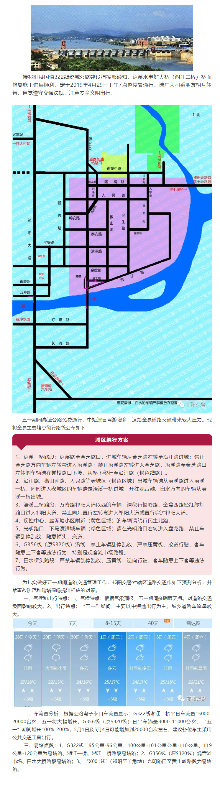 浯溪水电站大桥(湘江二桥)29日7时恢复通行(2019-04-28)