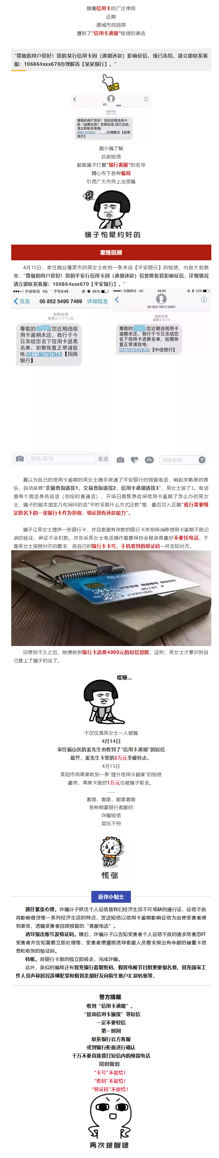 紧急提醒!近期“信用卡逾期”诈骗短信爆发,已有多人中招!(2019-04-25)