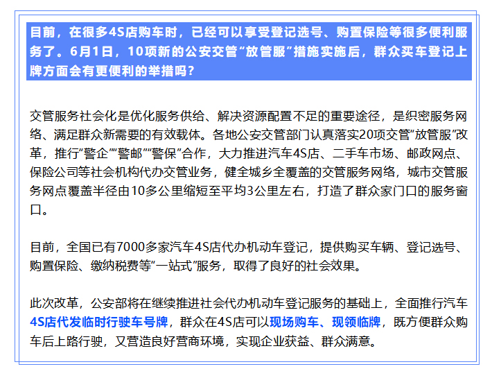 6月1日起,买车可以在4S店领临牌 | “放管服”改革10项新措施(2019-05-28)