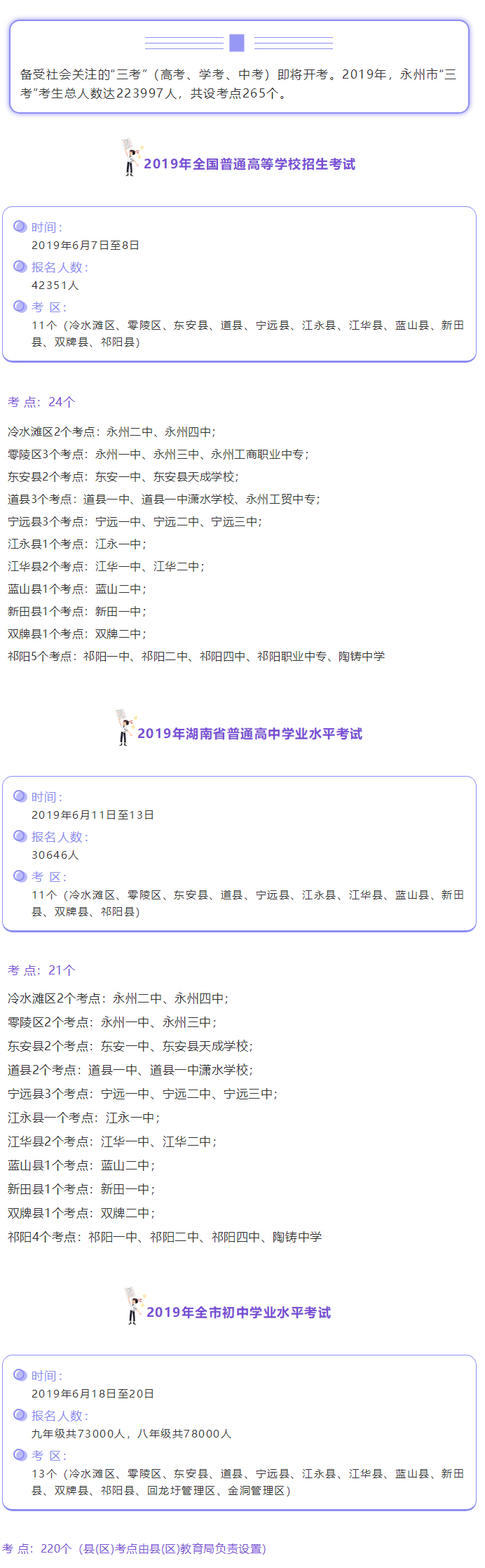 2019年永州高考、学考、中考时间和考点分布!(2019-06-04)