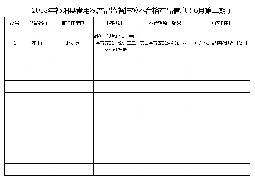 2018年祁阳县食用农产品抽检不合格产品信息汇总(6月2期)