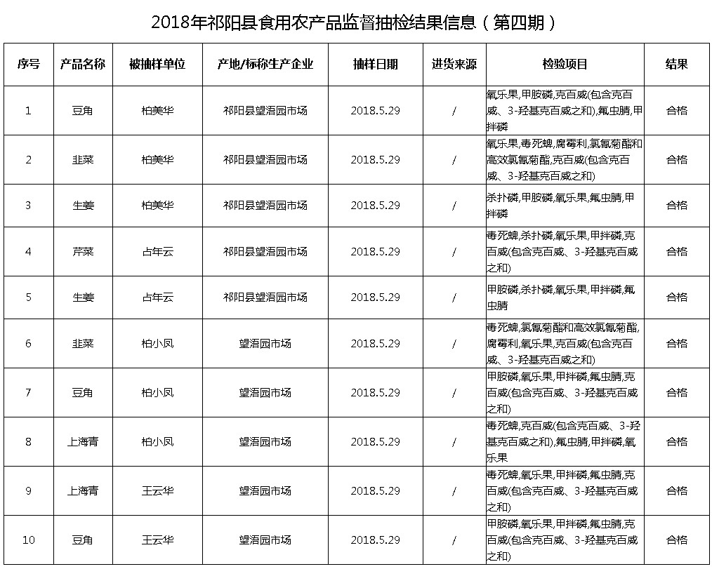 2018年祁阳县食用农产品抽检结果信息(第4期)