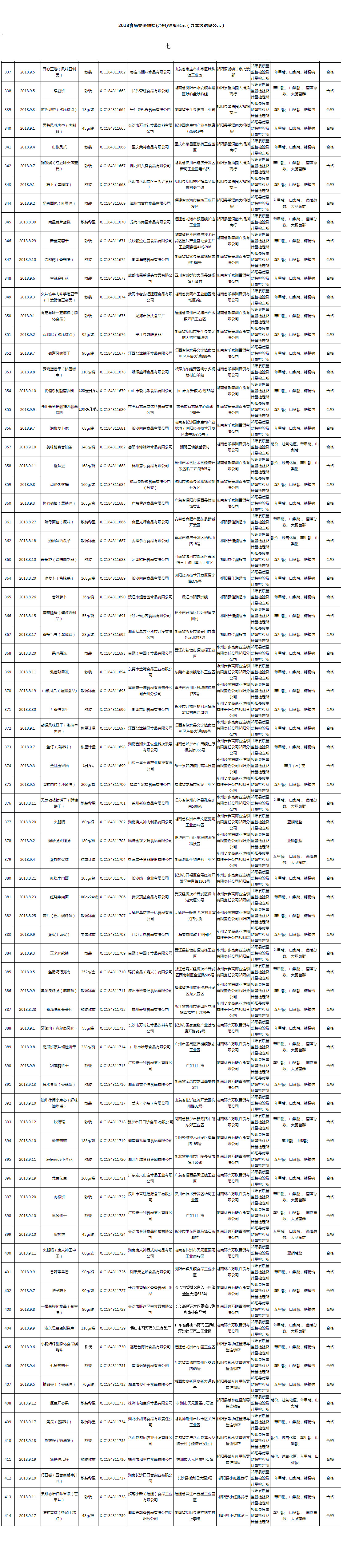 2018食品安全抽检(合格)结果公示(县本级结果公示)七