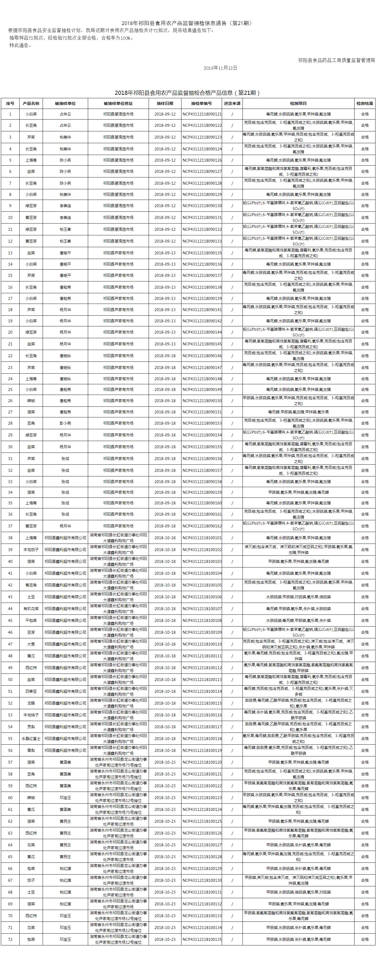 2018年食用农产品结果公示第21期