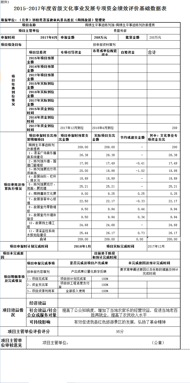 浯溪碑林2017度文化事业发展专项资金绩效评价指标评分表