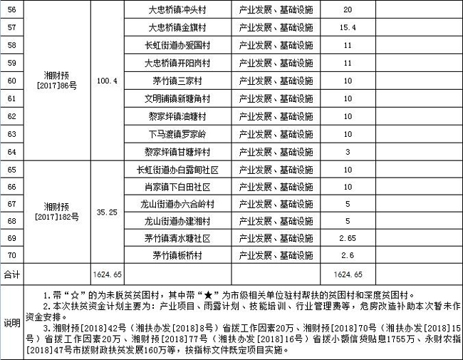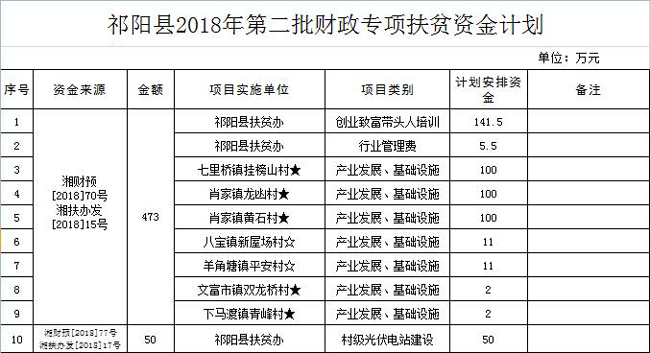 祁阳县2018年第二批财政专项扶贫资金计划表
