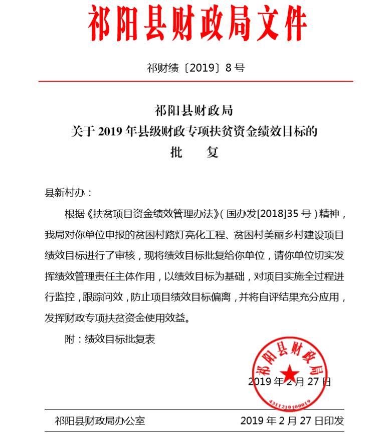新村办县级财政专项扶贫资金绩效批复