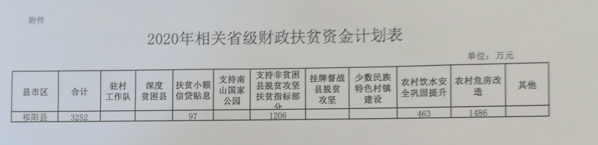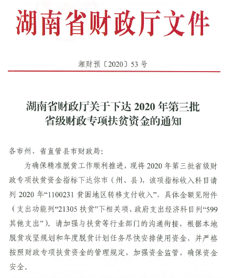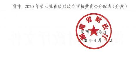 湖南省财政厅关于下达2020年第三批省级财政专项扶贫资金的通知