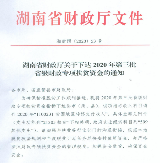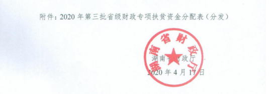 湖南省财政厅关于下达2020年第三批省级财政专项扶贫资金的通知