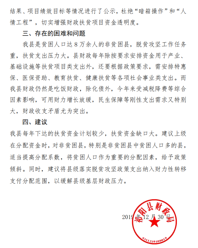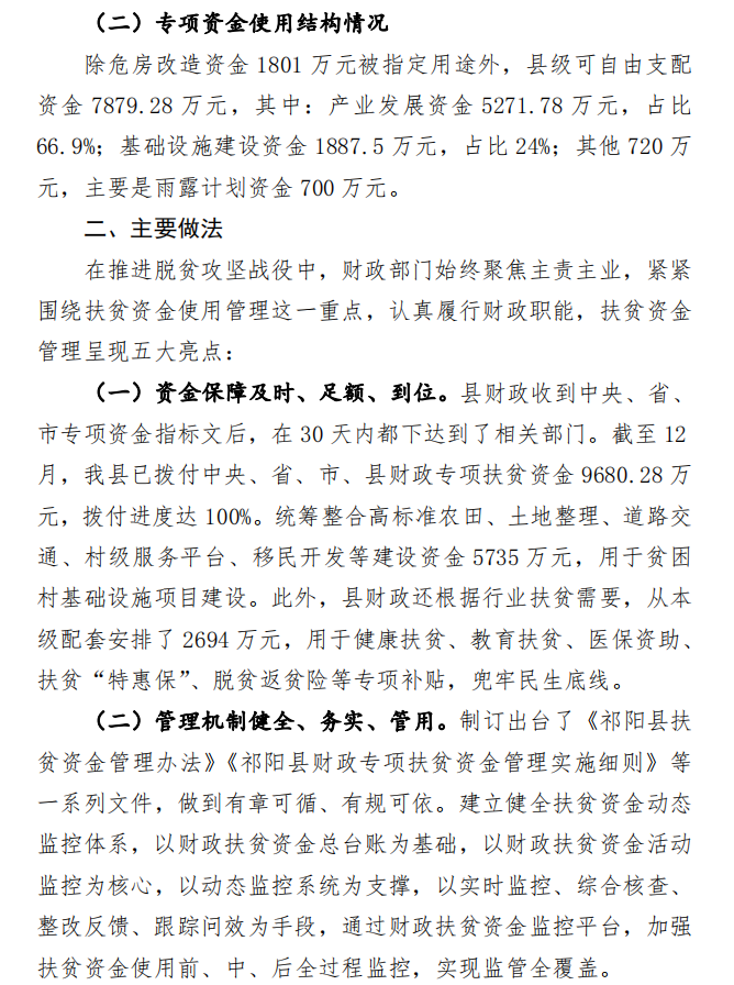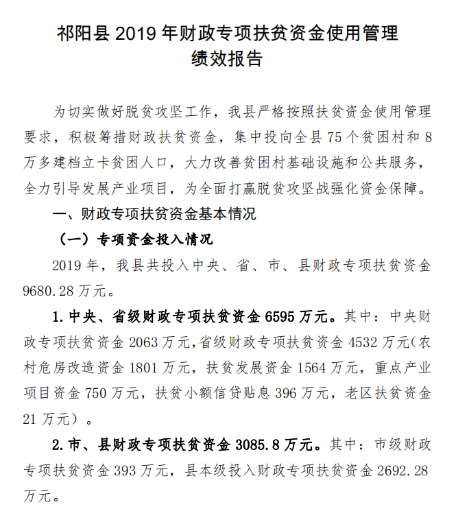 祁阳县2019年财政专项扶贫资金使用管理 绩效报告