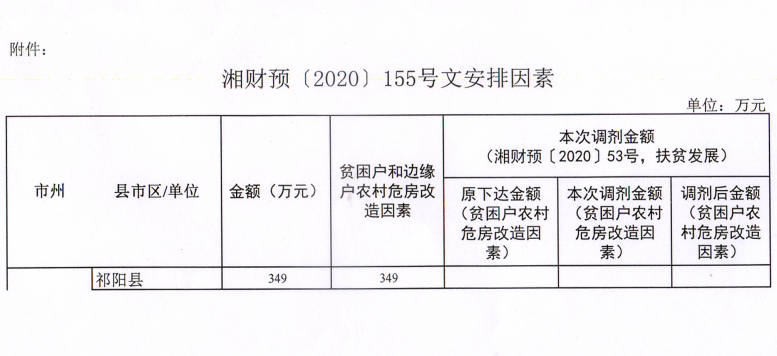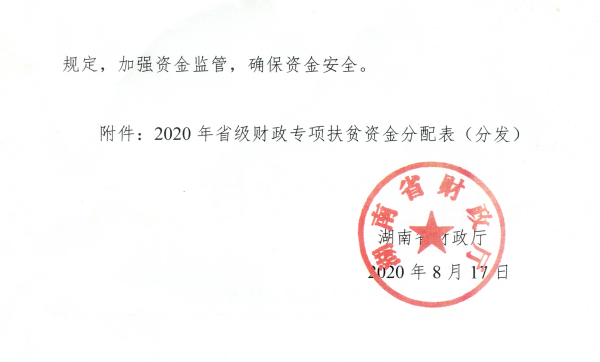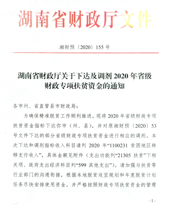 湖南省财政厅关于下达及调剂2020年省级财政专项扶贫资金的通知