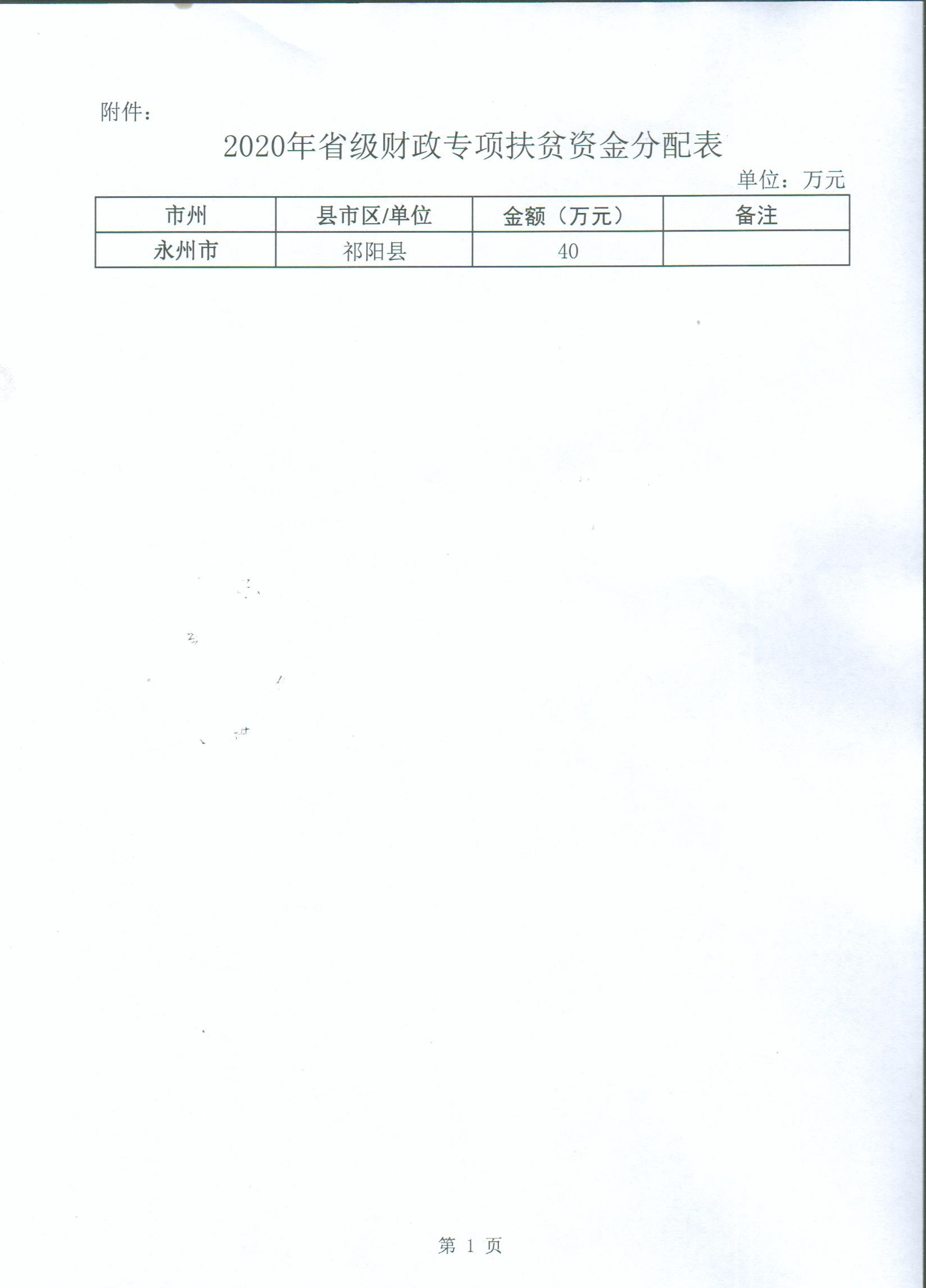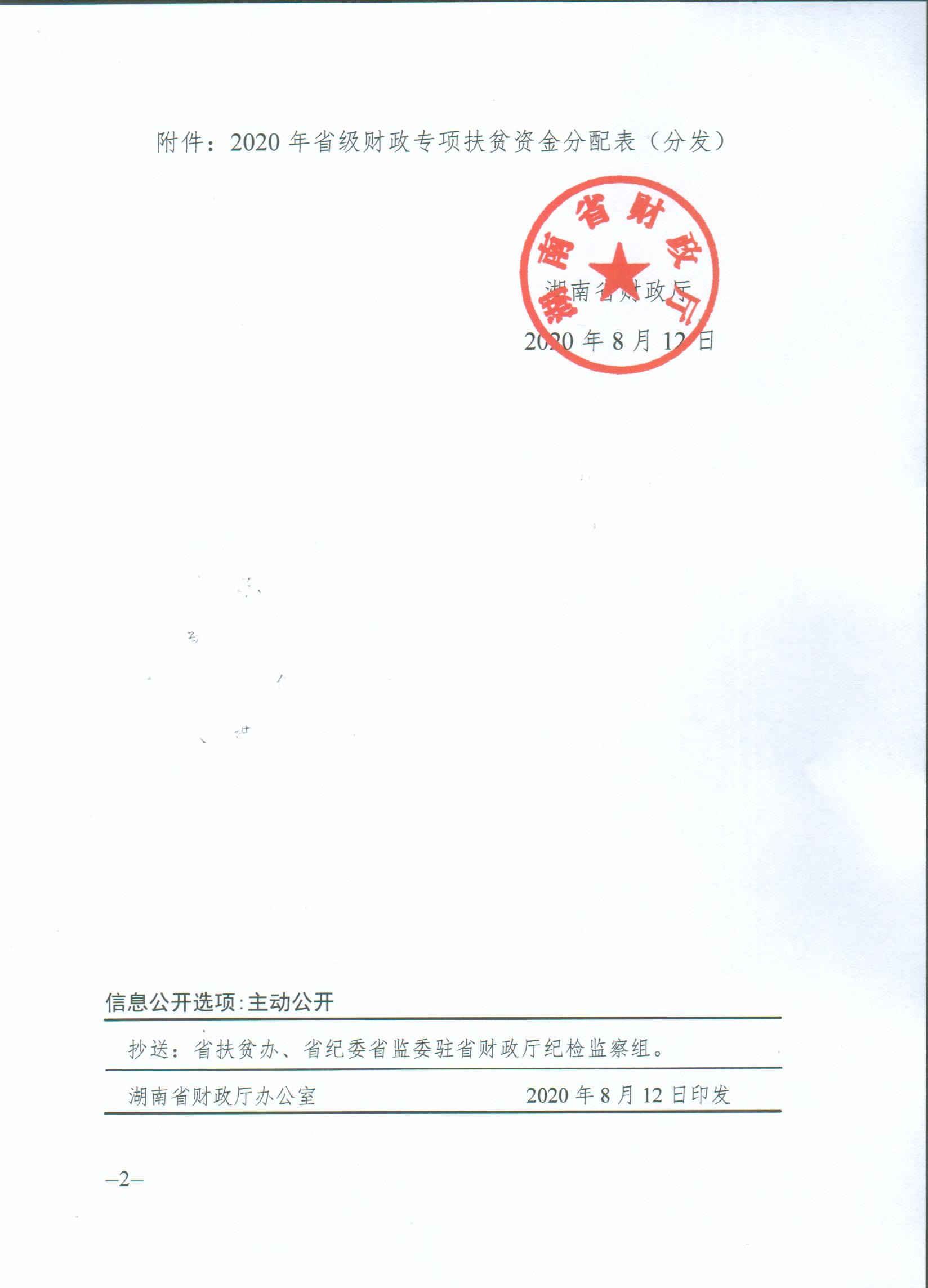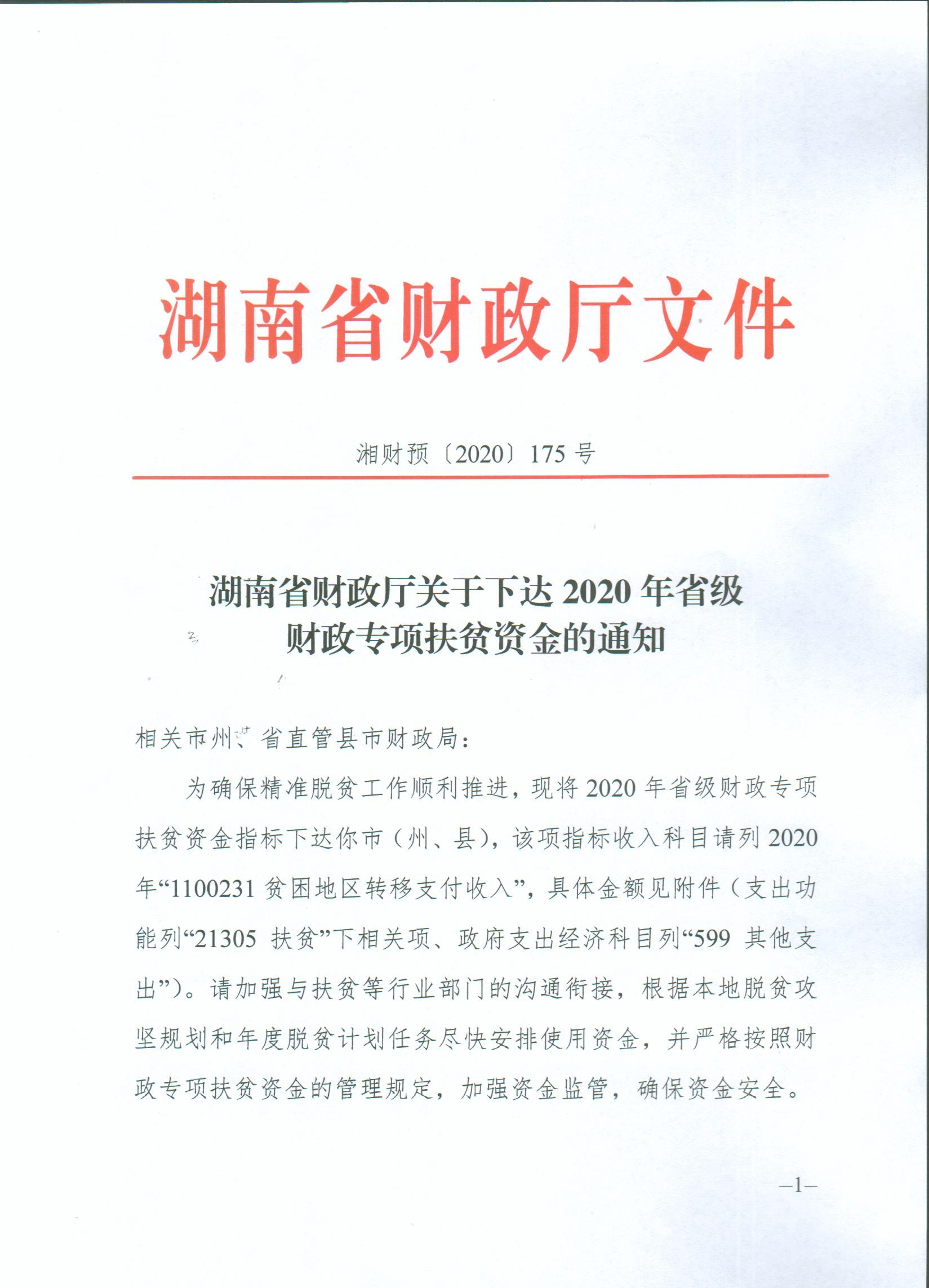 湖南省财政厅关于下达2020年省级财政专项扶贫资金的通知
