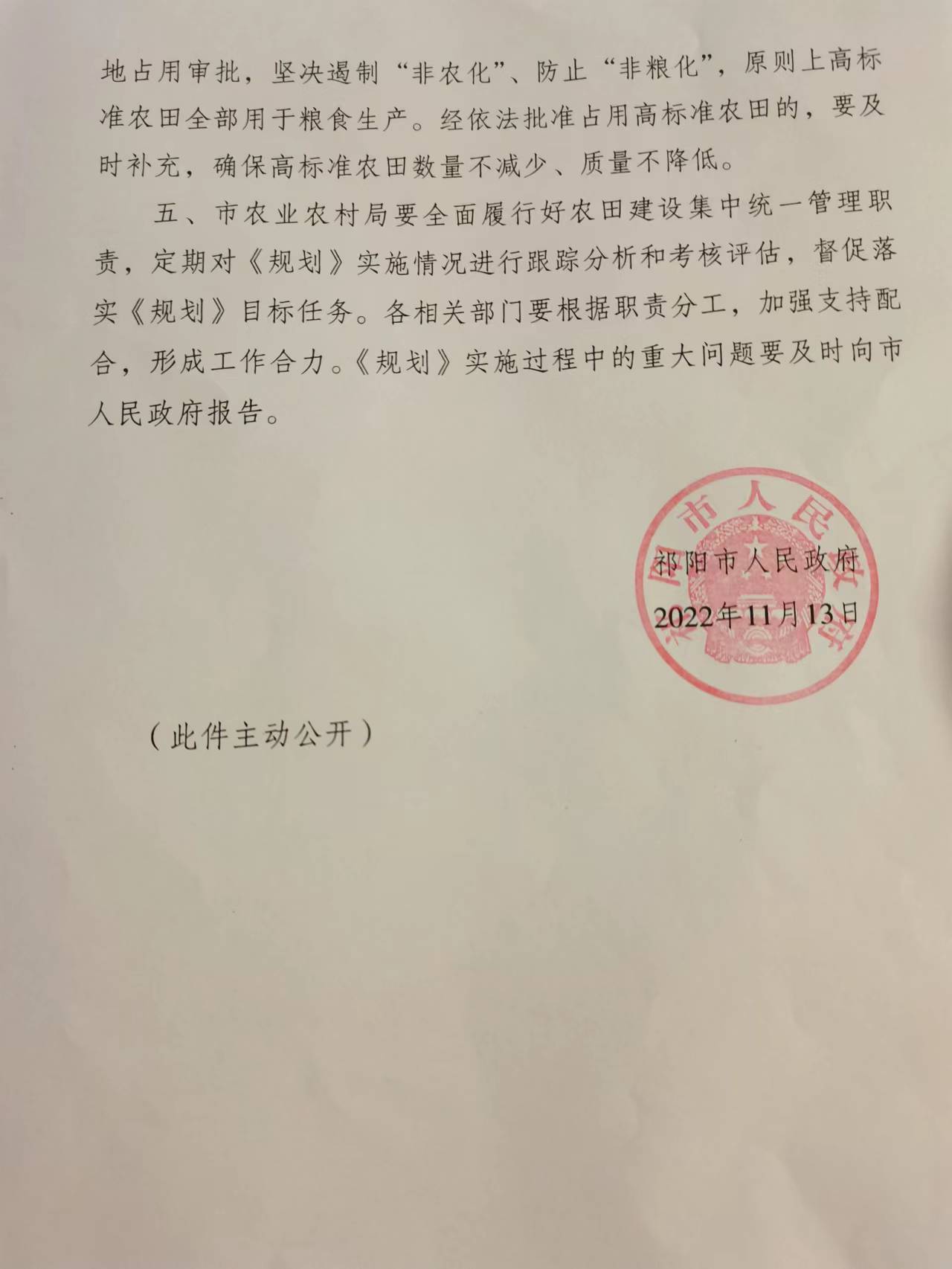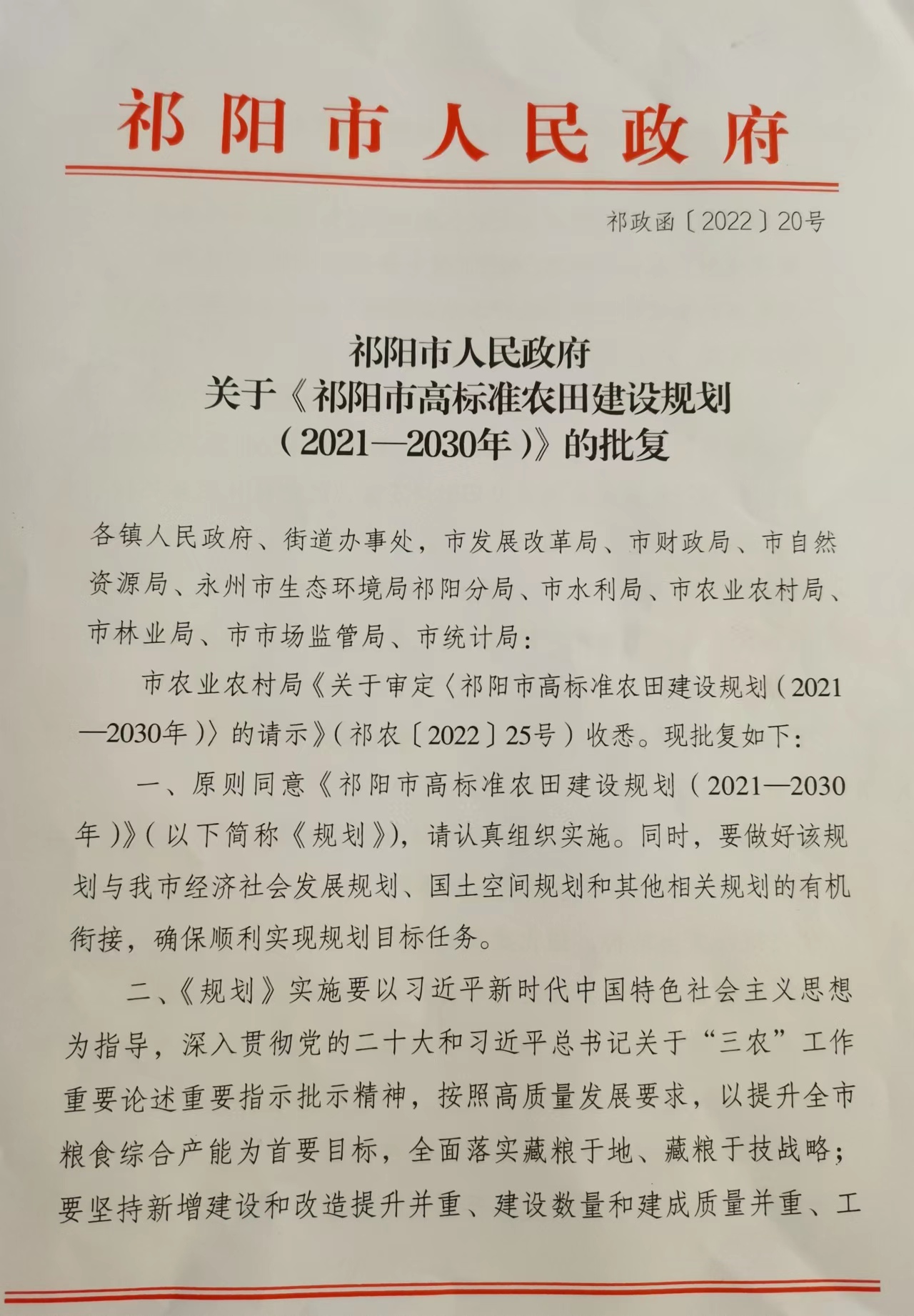 祁阳市人民政府关于《祁阳市高标准农田建设规划(2021-2023年)》的批复