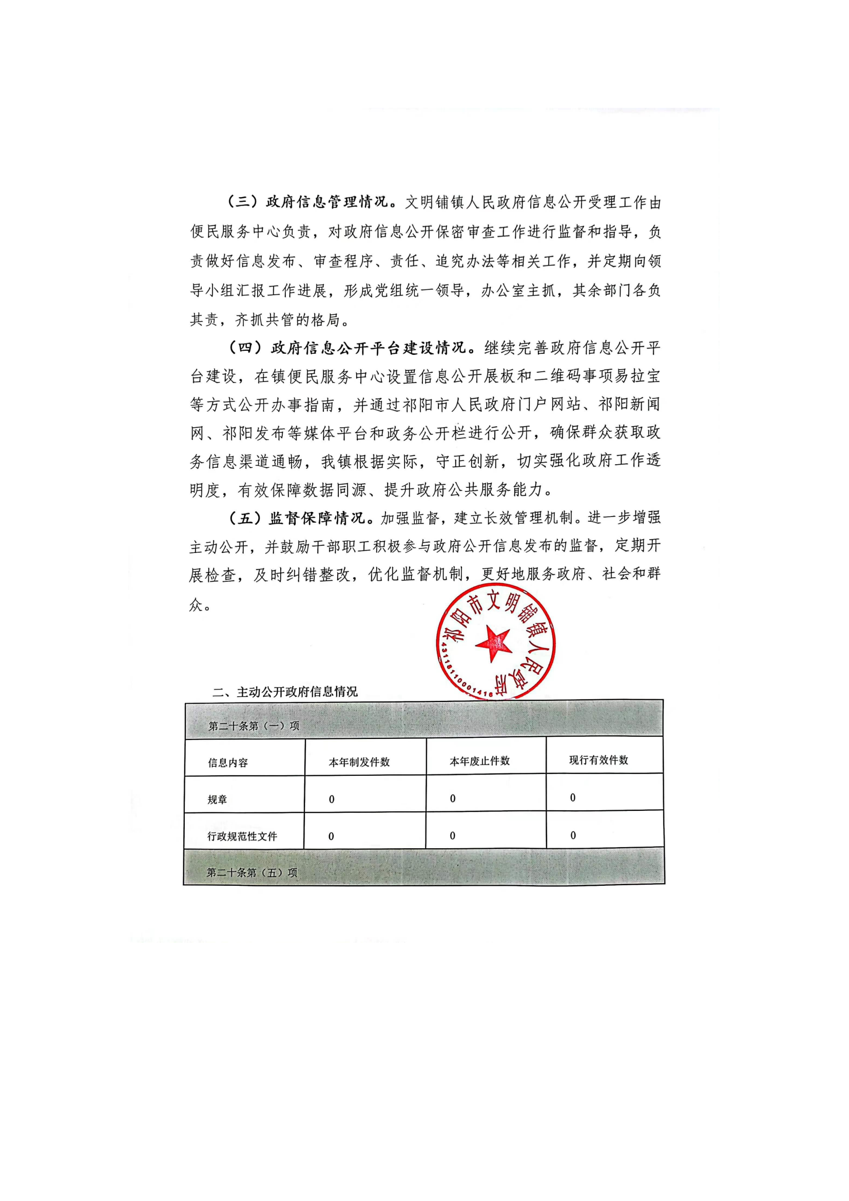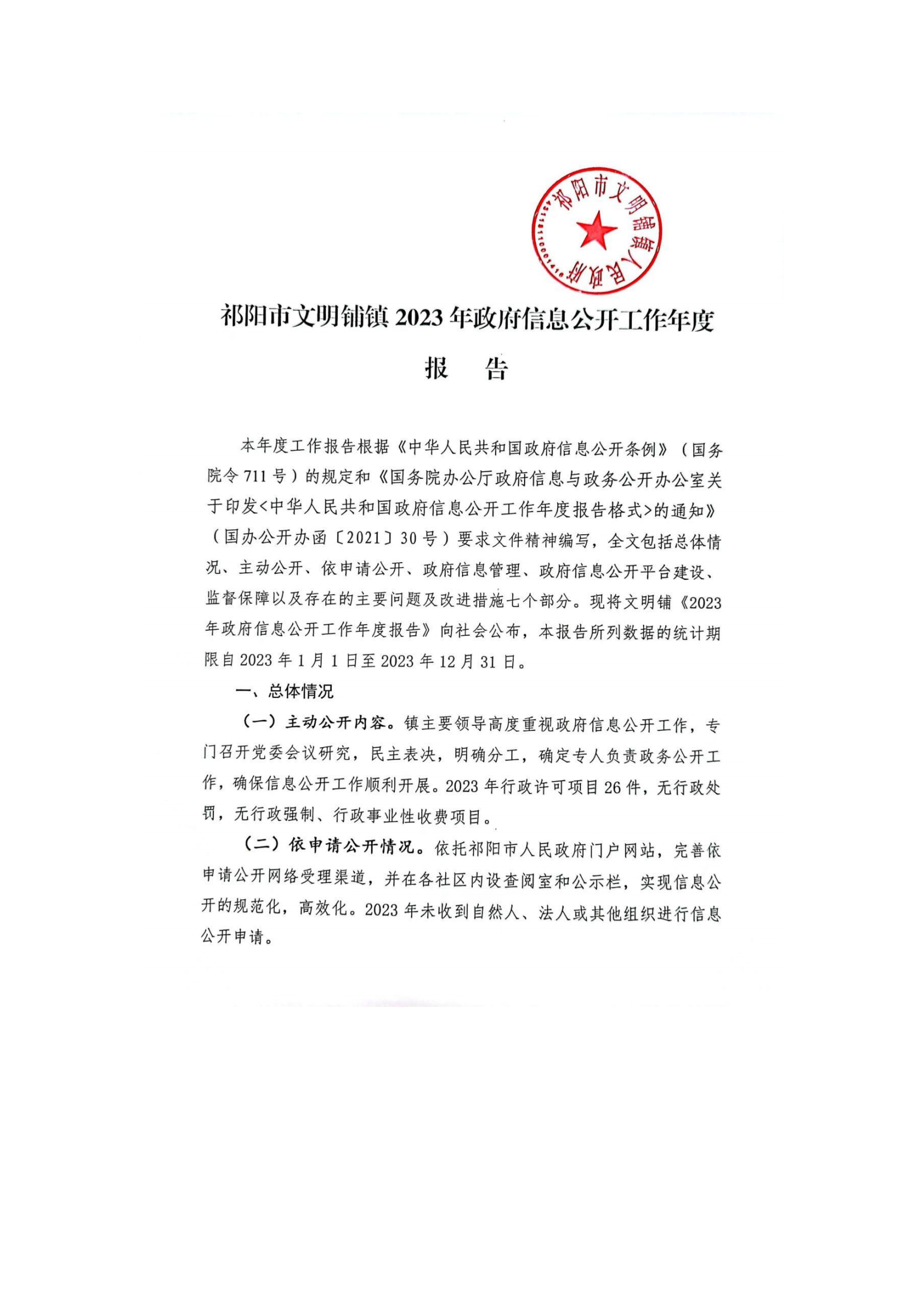 祁阳市文明铺镇2023年政府信息公开工作年度报告