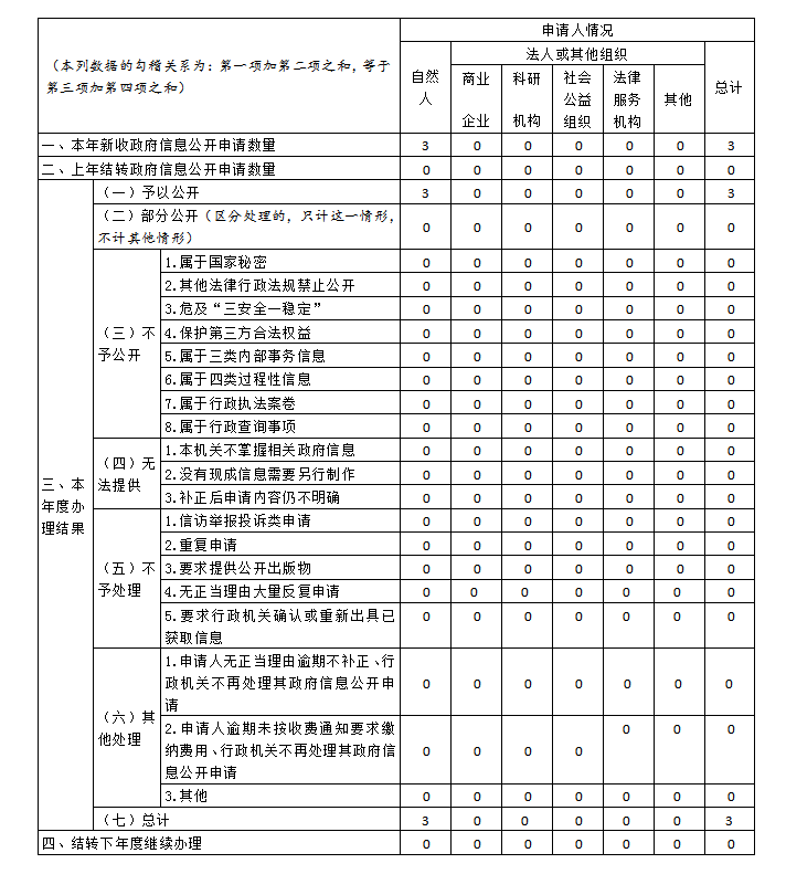 (二)申请公开情况。2023年收到自然人信息公开3件、未收到法人或其他组织进行信息公开申请。